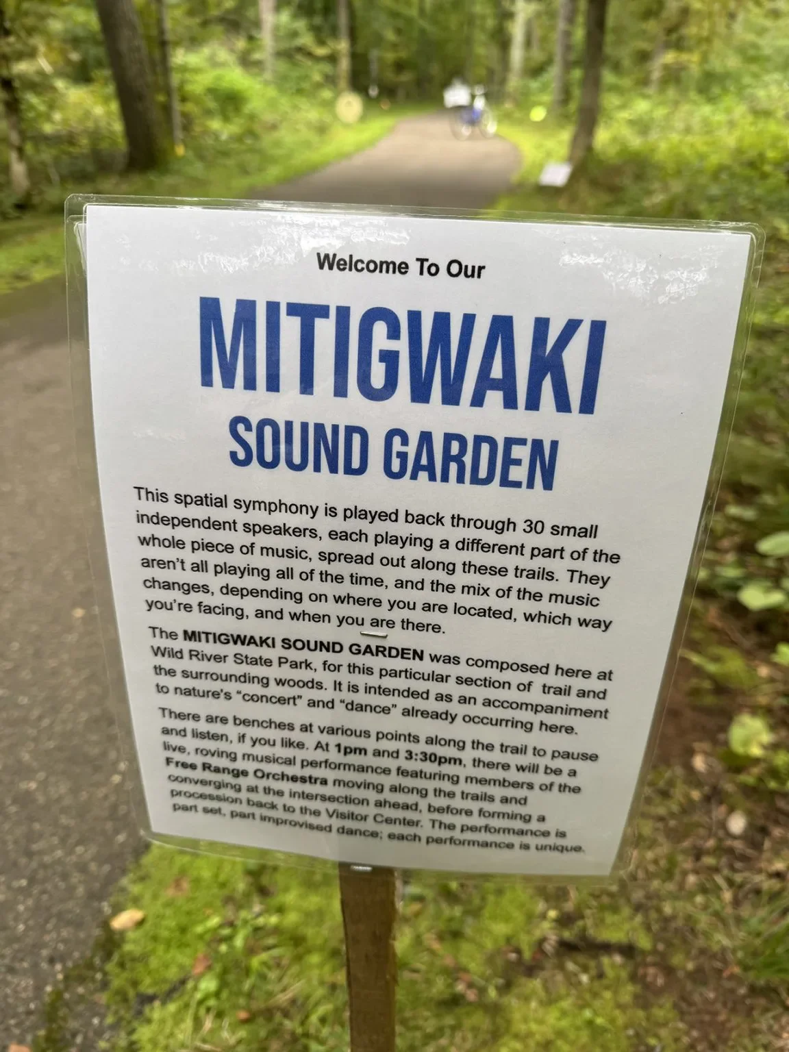 Signage for the Mitigwaki Sound Garden; Photo credit: JG Everest